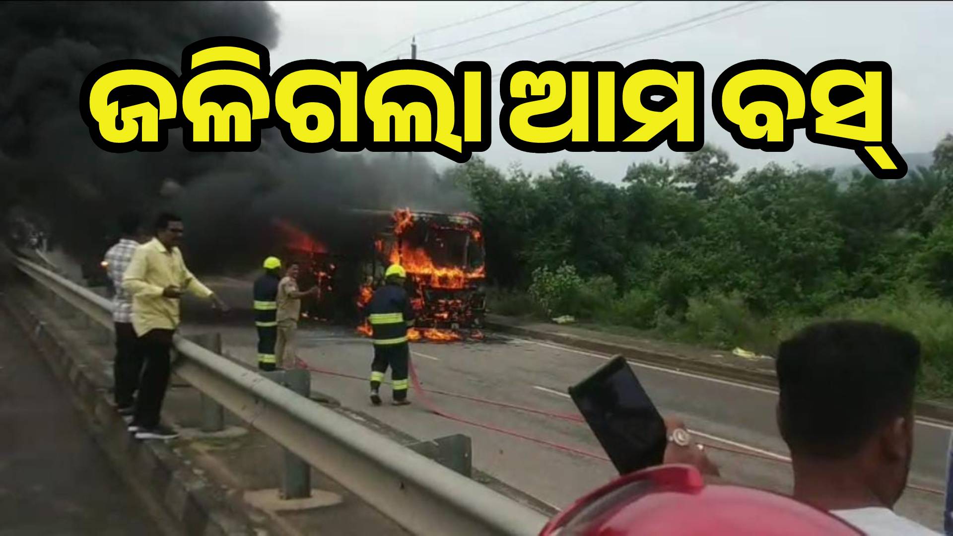 ଜାତୀୟ ରାଜପଥରେ ଅଗ୍ନିକାଣ୍ଡ:ହୁତୁହୁତୁ ହୋଇ ଜଳିଗଲା ଆମ ବସ୍