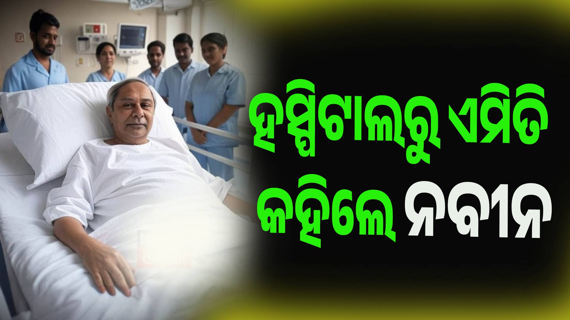 ନବୀନ ପଟ୍ଟନାୟକ ହସ୍ପିଟାଲ ବେଡରୁ ଏକ ଭିଡିଓ ବାର୍ତ୍ତା ଜାରି କରି କହିଛନ୍ତି, “ମୋତେ ଦେଖିବାକୁ ଚାହିଁଲେ ନବୀନ ନିବାସ ଆସନ୍ତୁ।” ଏହି ବାର୍ତ୍ତା ମାଧ୍ୟମରେ ସେ ପରୋକ୍ଷ ଭାବେ ସମର୍ଥକ ଓ ପ୍ରଶଂସକମାନଙ୍କୁ ହସ୍ପିଟାଲ ନଆସିବାକୁ ଅନୁରୋଧ କରିଛନ୍ତି। ସେ ଡାକ୍ତରୀ ଟିମ୍, ଦଳୀୟ ନେତା, ସମର୍ଥକ ଏବଂ ପ୍ରଶଂସକମାନଙ୍କୁ ତାଙ୍କ ସମର୍ଥନ ଓ ଶୁଭେଚ୍ଛା ପାଇଁ ଧନ୍ୟବାଦ ଜଣାଇଛନ୍ତି। ଏହି ବାର୍ତ୍ତା ସୂଚାଉଛି ଯେ, ସେ ଖୁବ୍ ଶୀଘ୍ର ହସ୍ପିଟାଲରୁ ଡିସଚାର୍ଜ ହୋଇପାରନ୍ତି।
